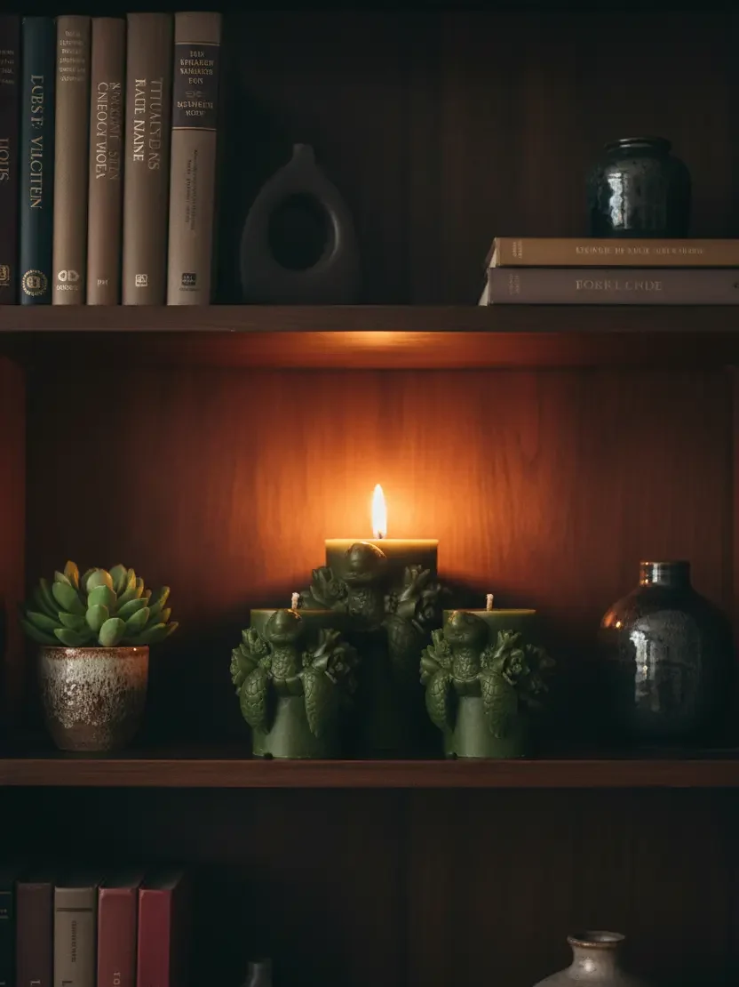 Tus Velas Perfectas: El color y la forma son tus aliados. Nuestro set de velas esculturales Didi en color verde oscuro aporta un toque orgánico y sorprendente.