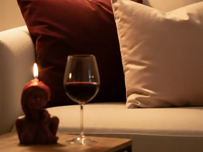 Tus Velas Perfectas: Aquí, las velas son las joyas de la corona. Nuestras velas de pilar en un profundo color vino aportan dramatismo y suntuosidad.