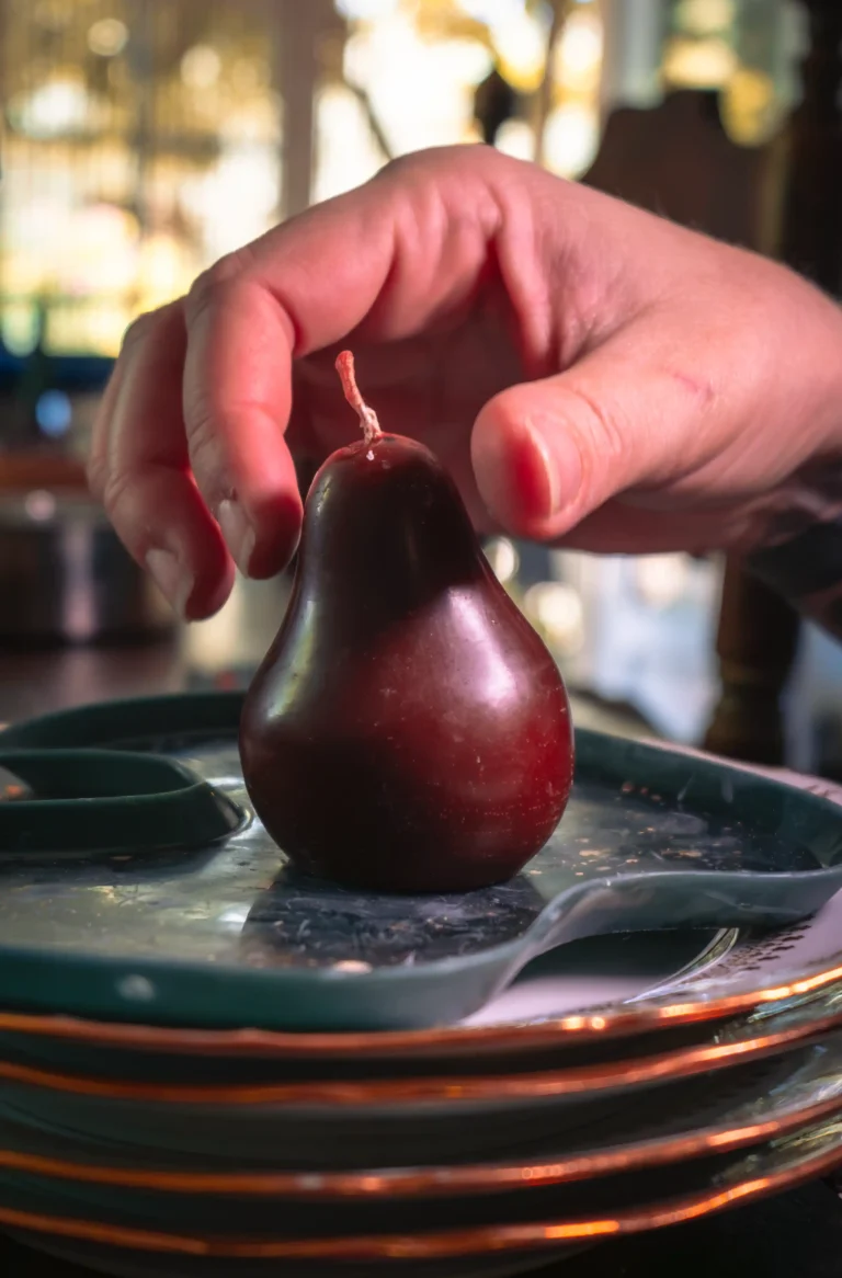 Y para suavizar, nuestras velas en forma de pera Sandrine en un tono verde salvia añaden la nota delicada.