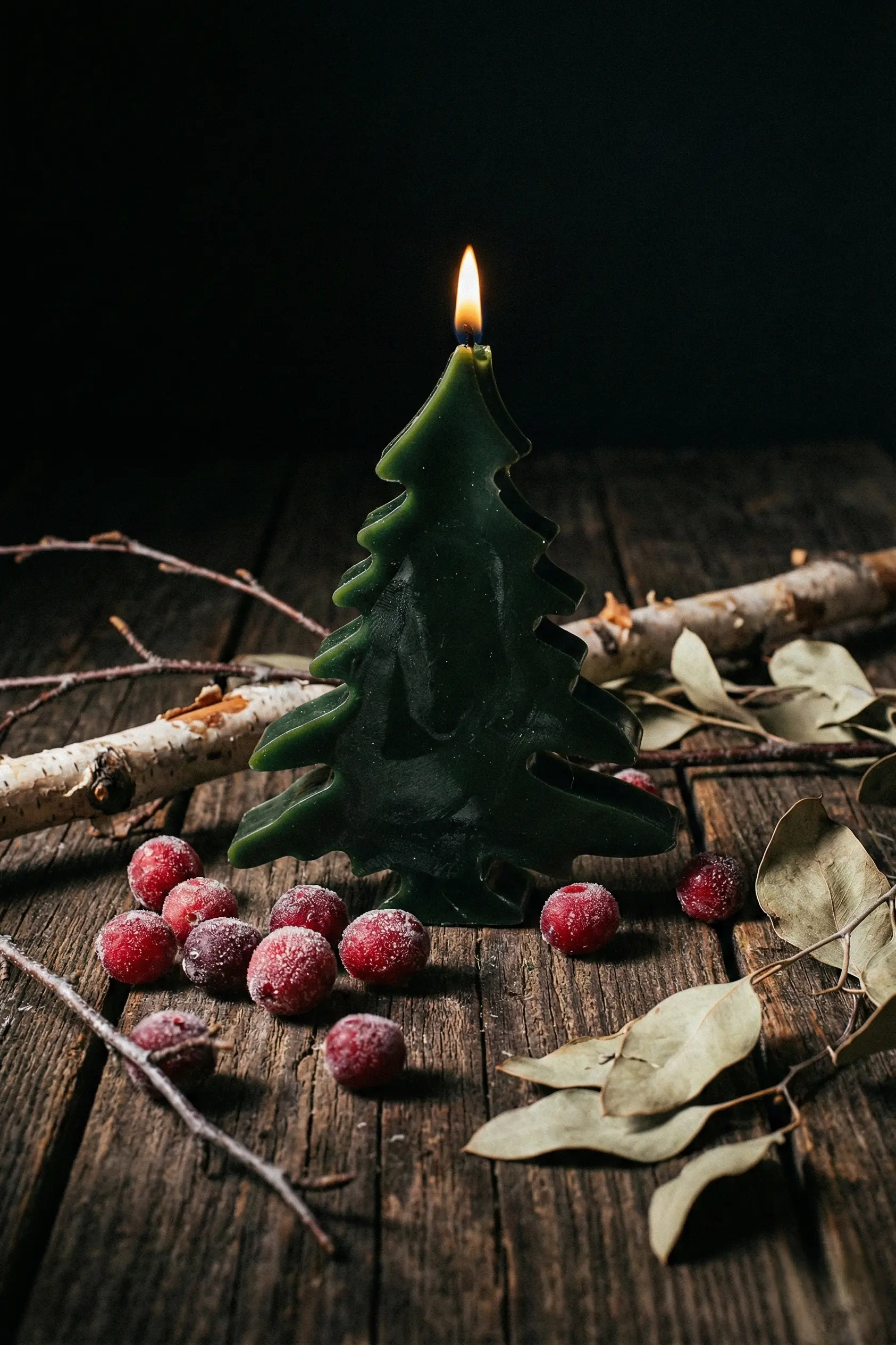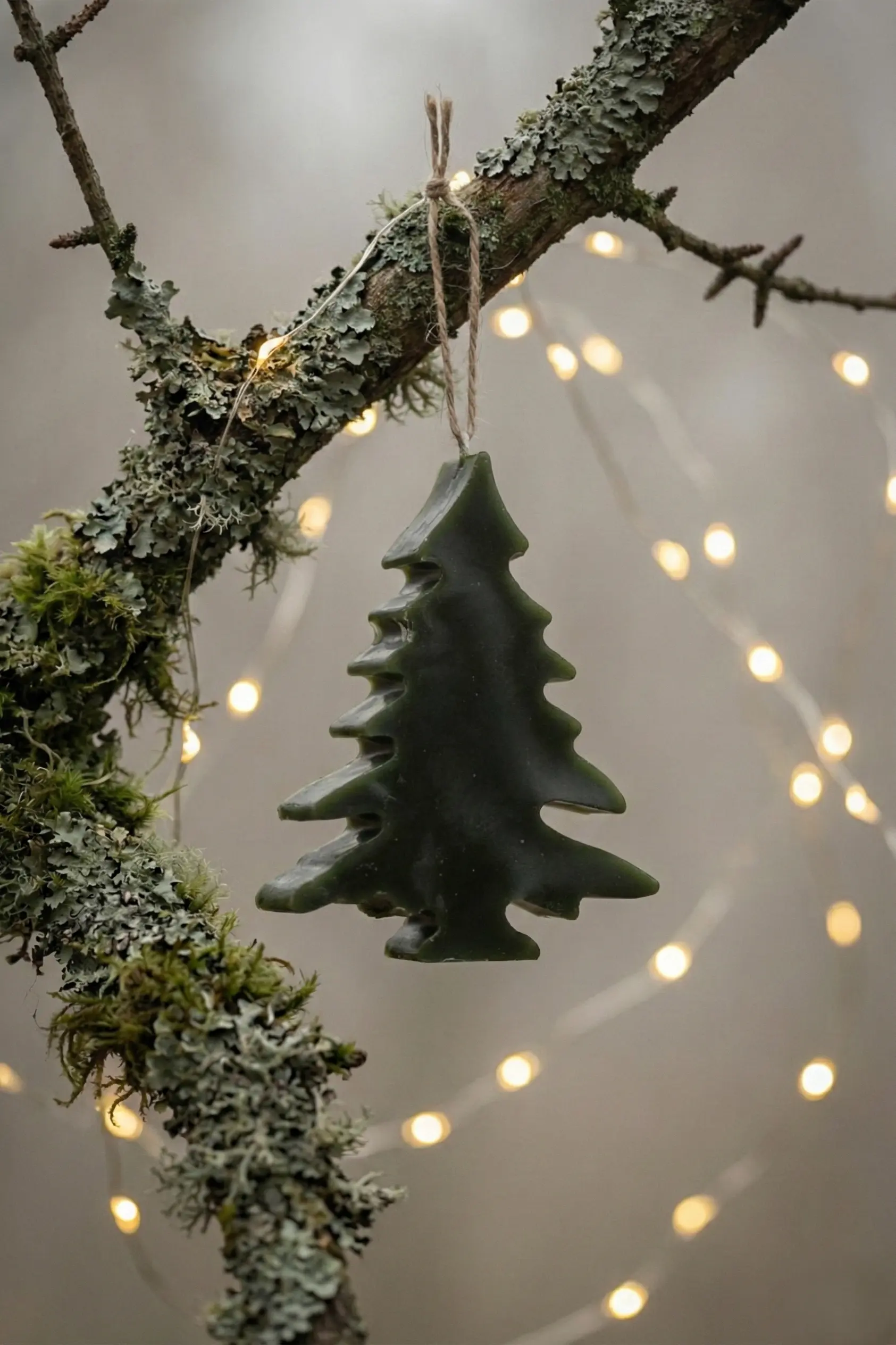 Velas en forma de abetos, hecha a mano con cera de abejas de apicultores locales. Vertida en moldes de silicona y moldeada para obtener los detalles, para el color se usaron pigmentos de tierra extraídos de raíces y verduras, sin químicos añadidos. El olor de la cera de abejas puede variar dependiendo de la temporada del año en que se coseche y de las flores que liben las abejas.