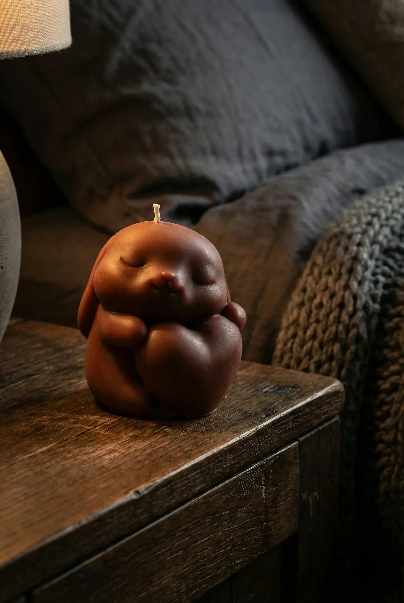Vela en forma de figura de conejita con corazón, hecha a mano con cera de abejas de apicultores locales. Vertida en moldes de silicona y moldeada para obtener los detalles, para el color se usaron pigmentos de tierra extraídos de raíces y verduras, sin químicos añadidos. El olor de la cera de abejas puede variar dependiendo de la temporada del año en que se coseche y de las flores que liben las abejas.